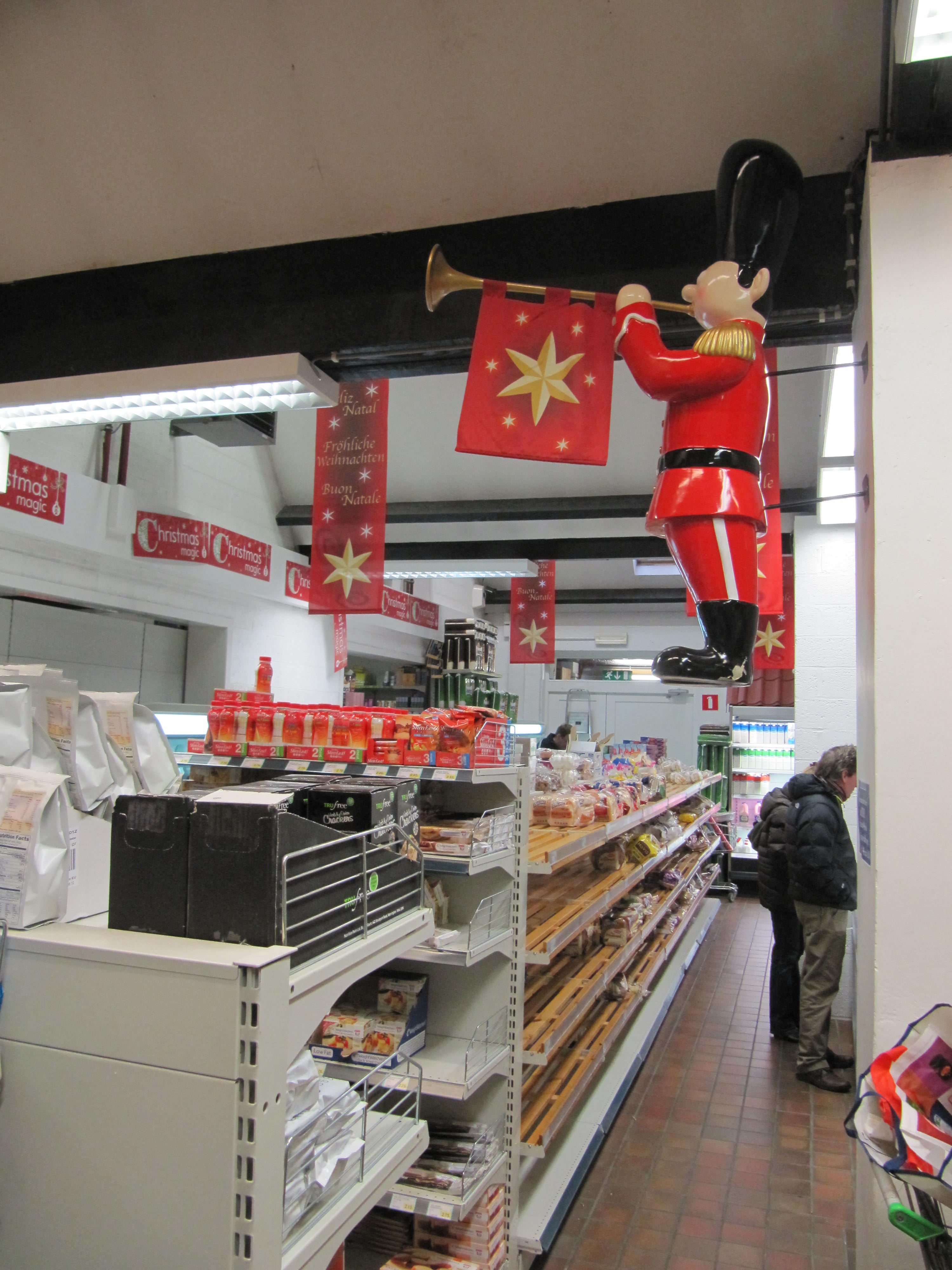 Binnen zie je enkel Engelse artikelen, een lijst maken om op te noemen zou veel te ver gaan, je kan best zelf eens gaan kijken, en je zou bijvoorbeeld wat haggis of een christmas pudding kunnen meenemen.