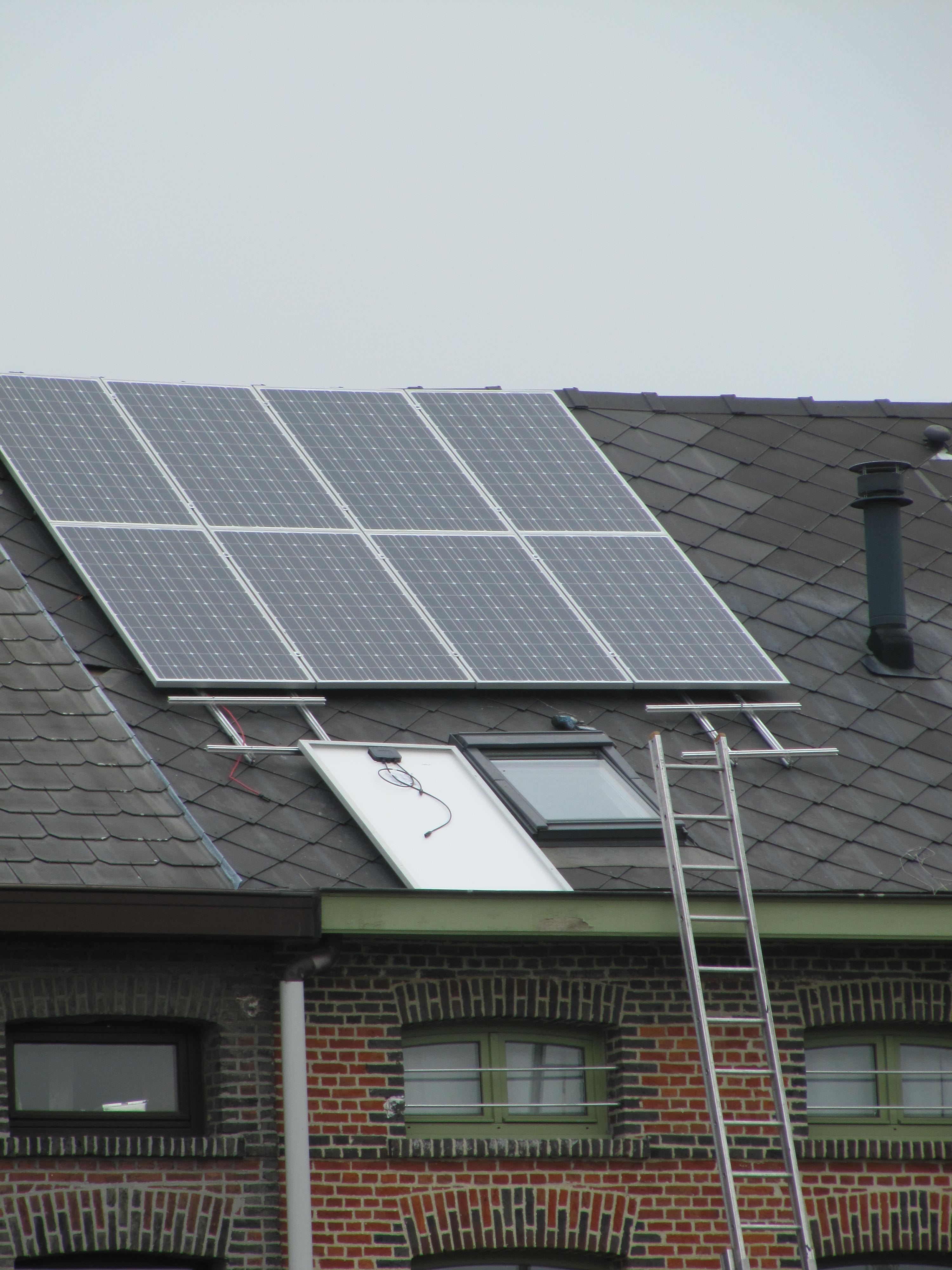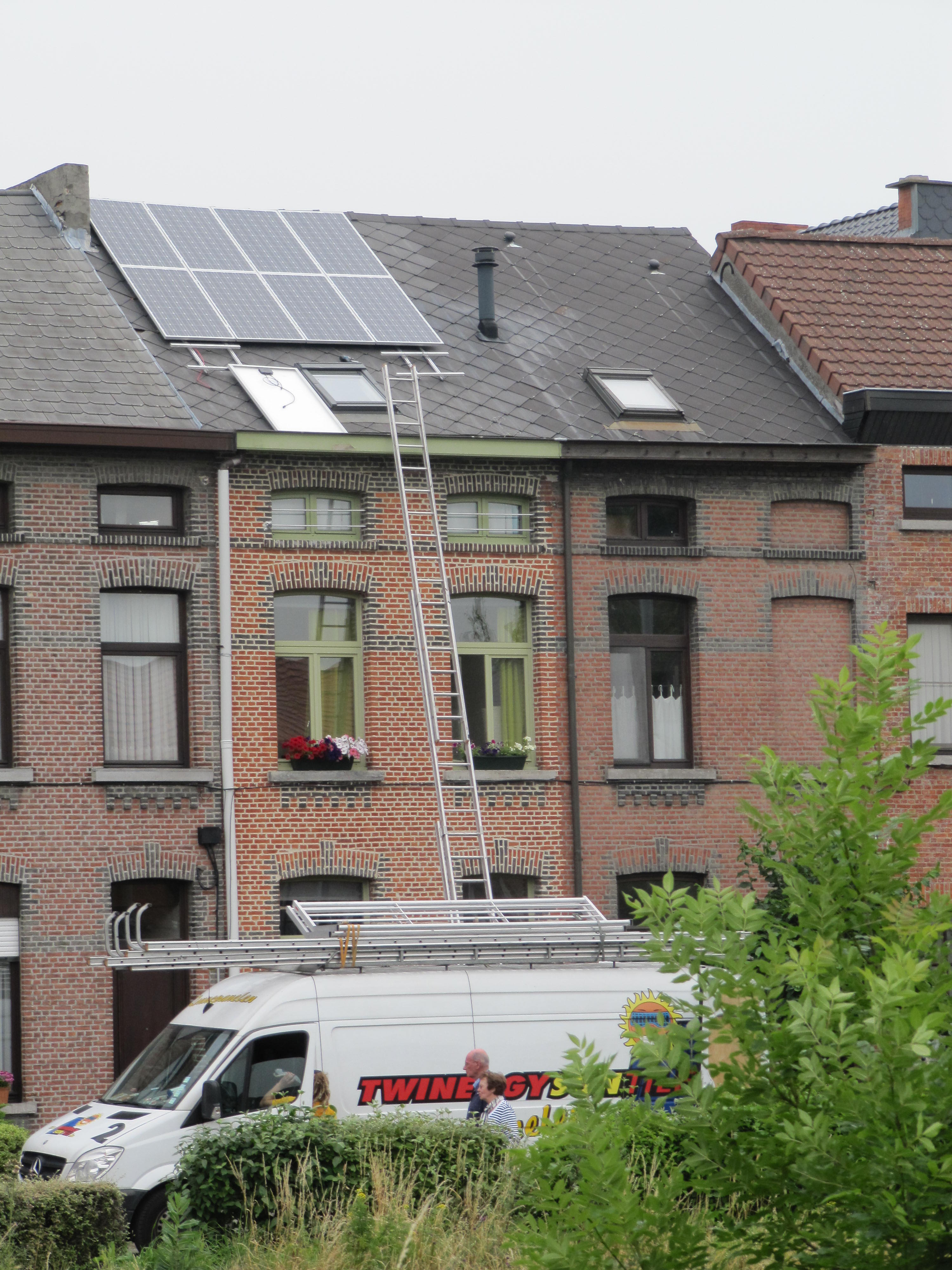 Onze overgebuur liet vandaag zonnepanelen op het dak van zijn huis plaatsen, in navolging van zoveel anderen die hem daarin voorgingen.