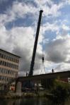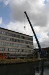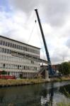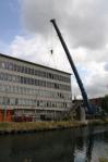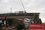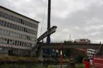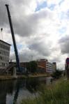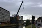 Gisteren werd met groot materiaal de ontmanteling van de brug een feit. De grote overspanning werd met groot materieel en het nodige vakmanschap weggehaald.