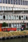 Metalen “sporen” aan de zijde van de trappen zorgden ervoor dat de fietsen ook mee de brug op geraakten, iets waar zeer veel mensen gebruik van maakten.