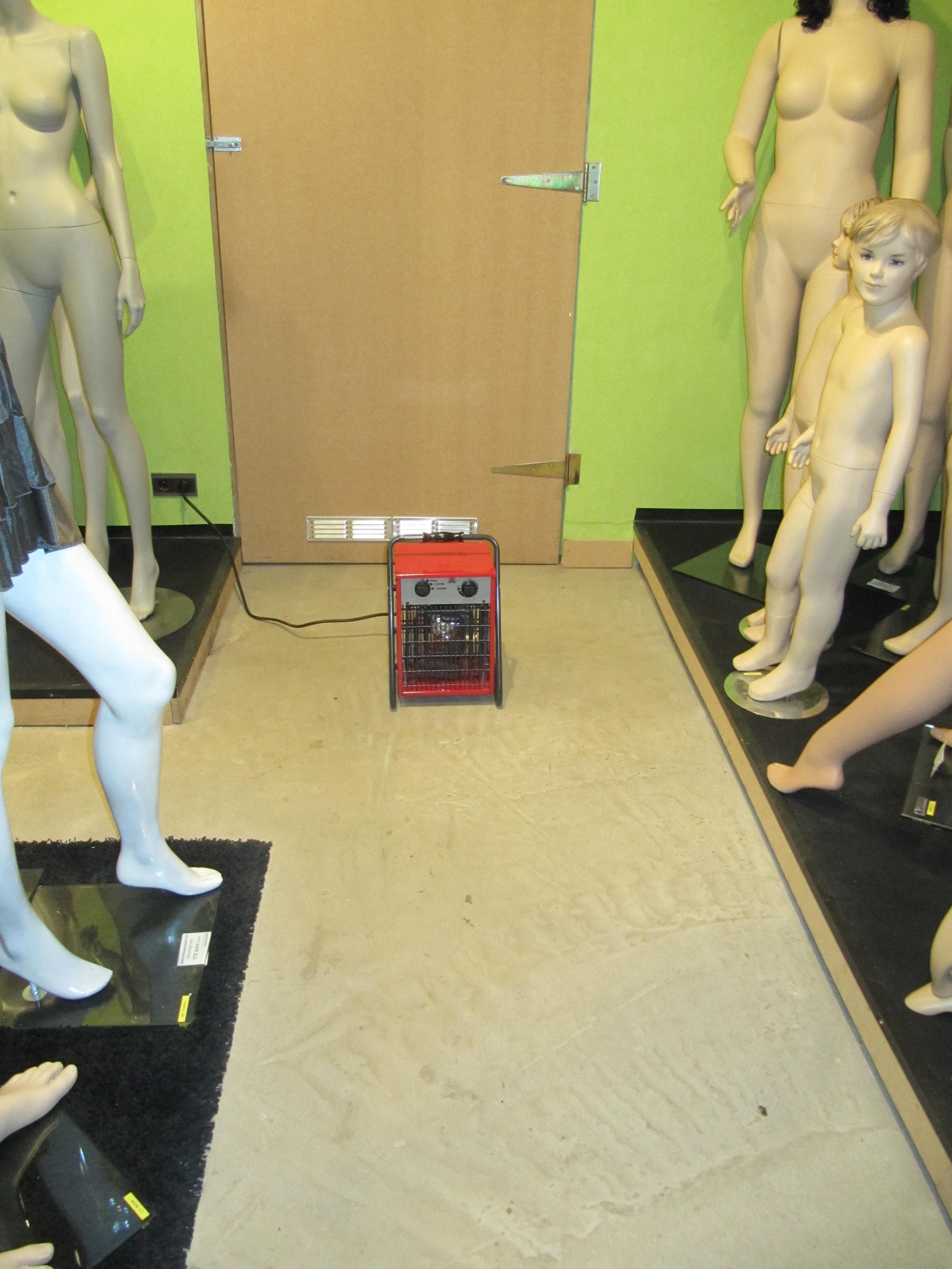 In mijn toonzaal met etalagepoppen is het ook koud. Maar aangezien ik nog grote uitbreidingsplannen heb is een gewone verwarming nog niet zo evident. Ik was van plan om de ruimte met een pelletkachel te gaan opwarmen maar de koude was er ineens zo snel dat ik dringend een andere oplossing moest vinden … en die vond ik in “den Aldi” 😉