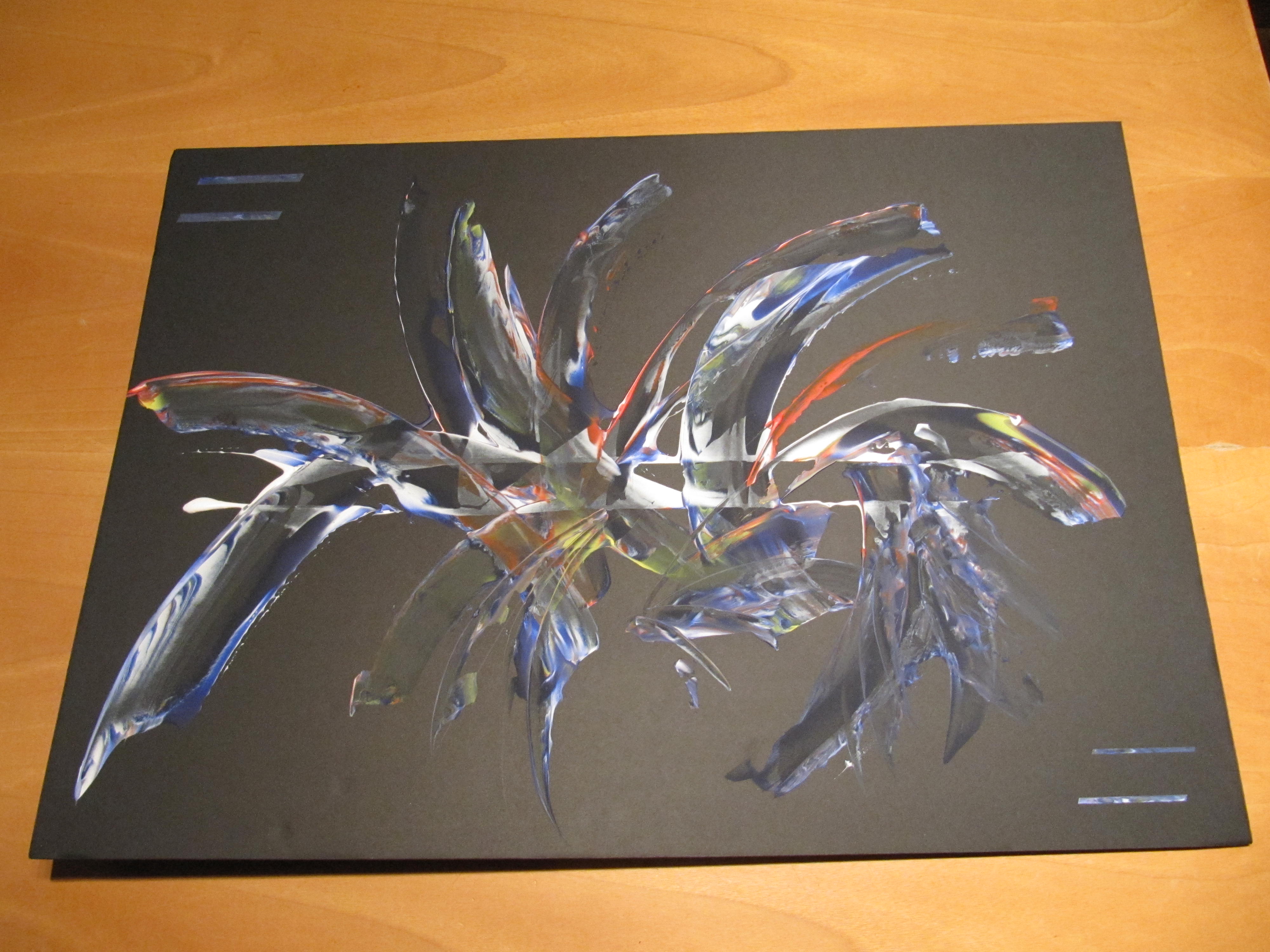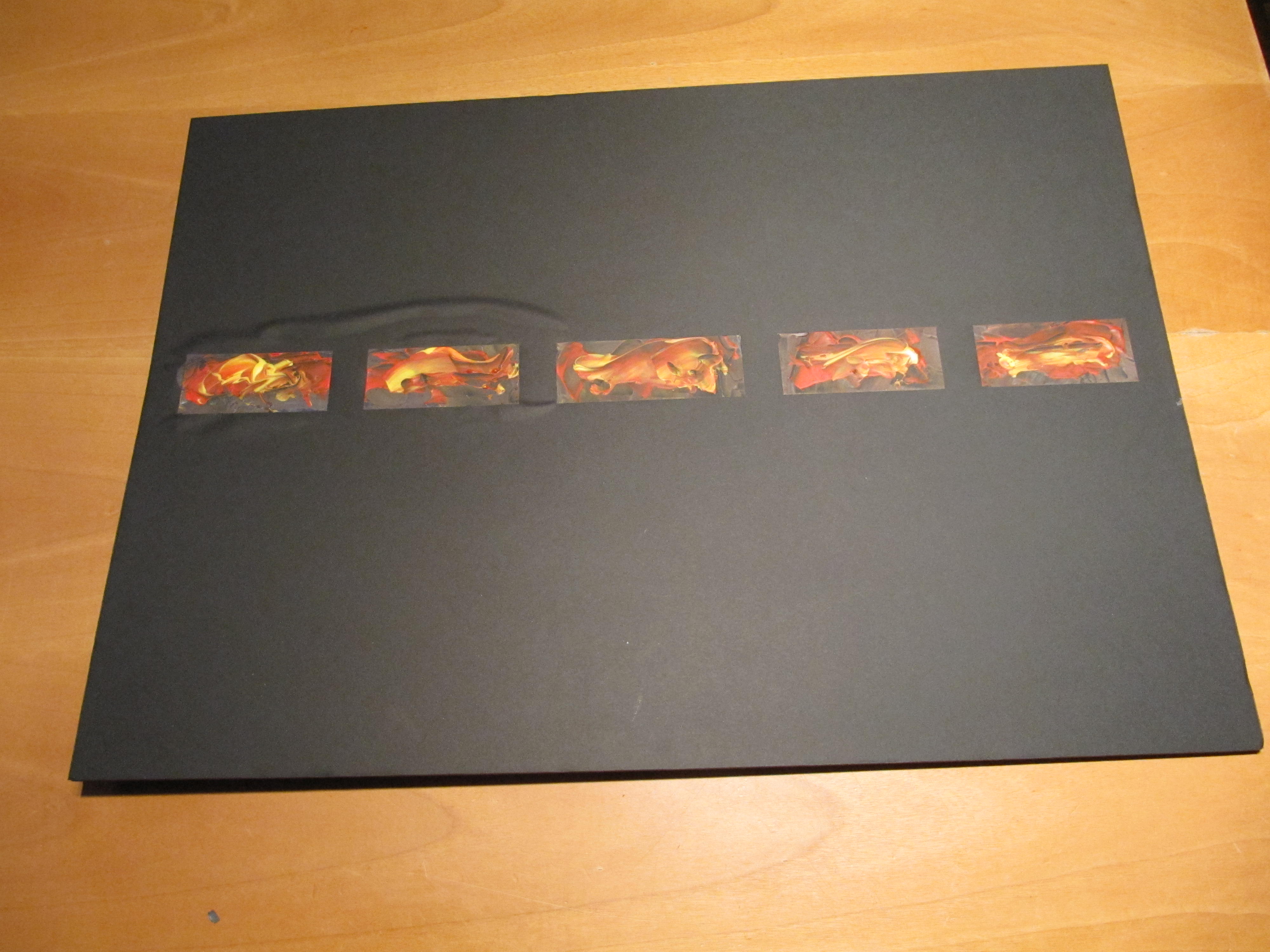 Maar daarna heb ik op zwarte kadapac een paar abstracte ontwerpen gemaakt.