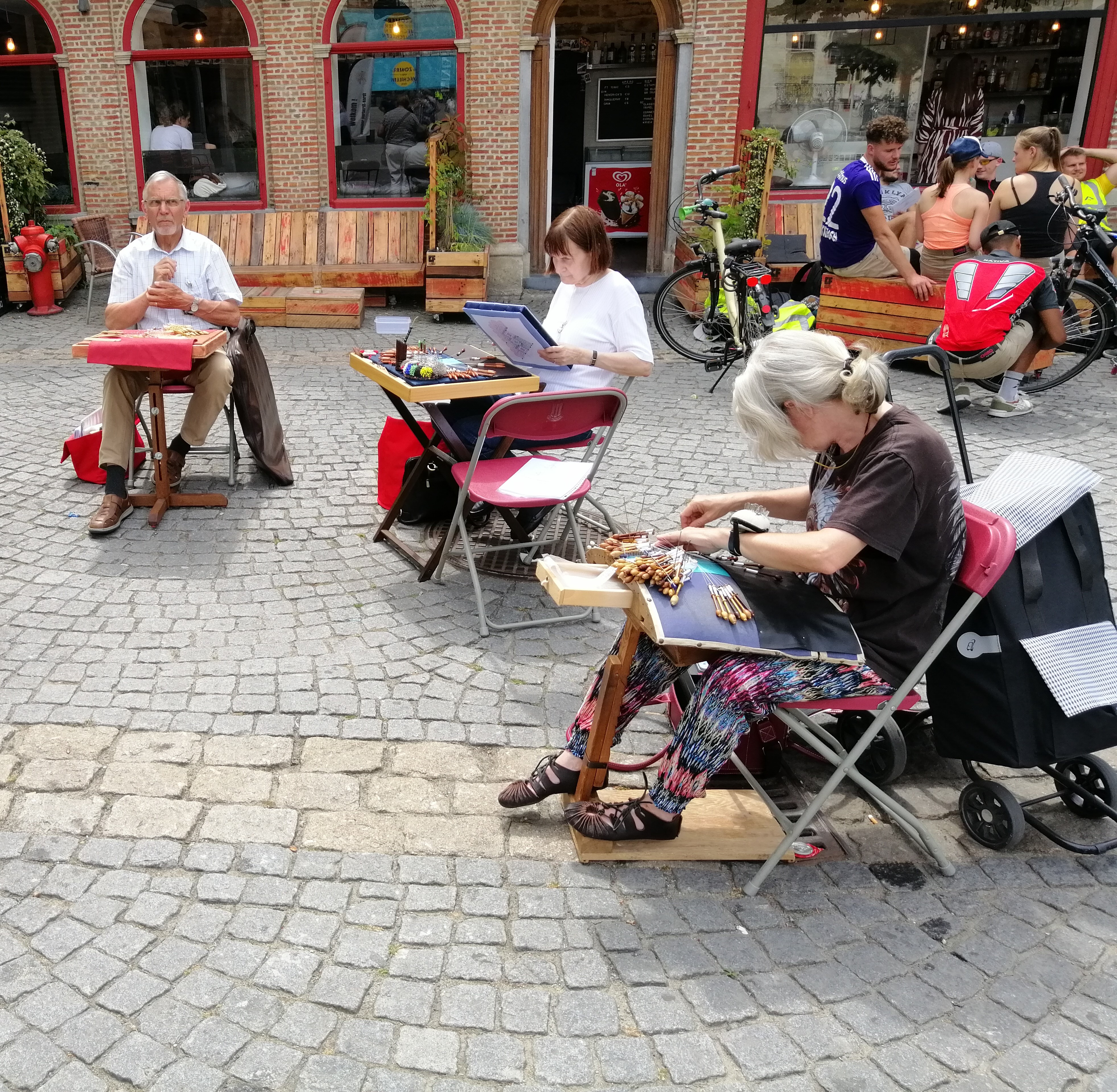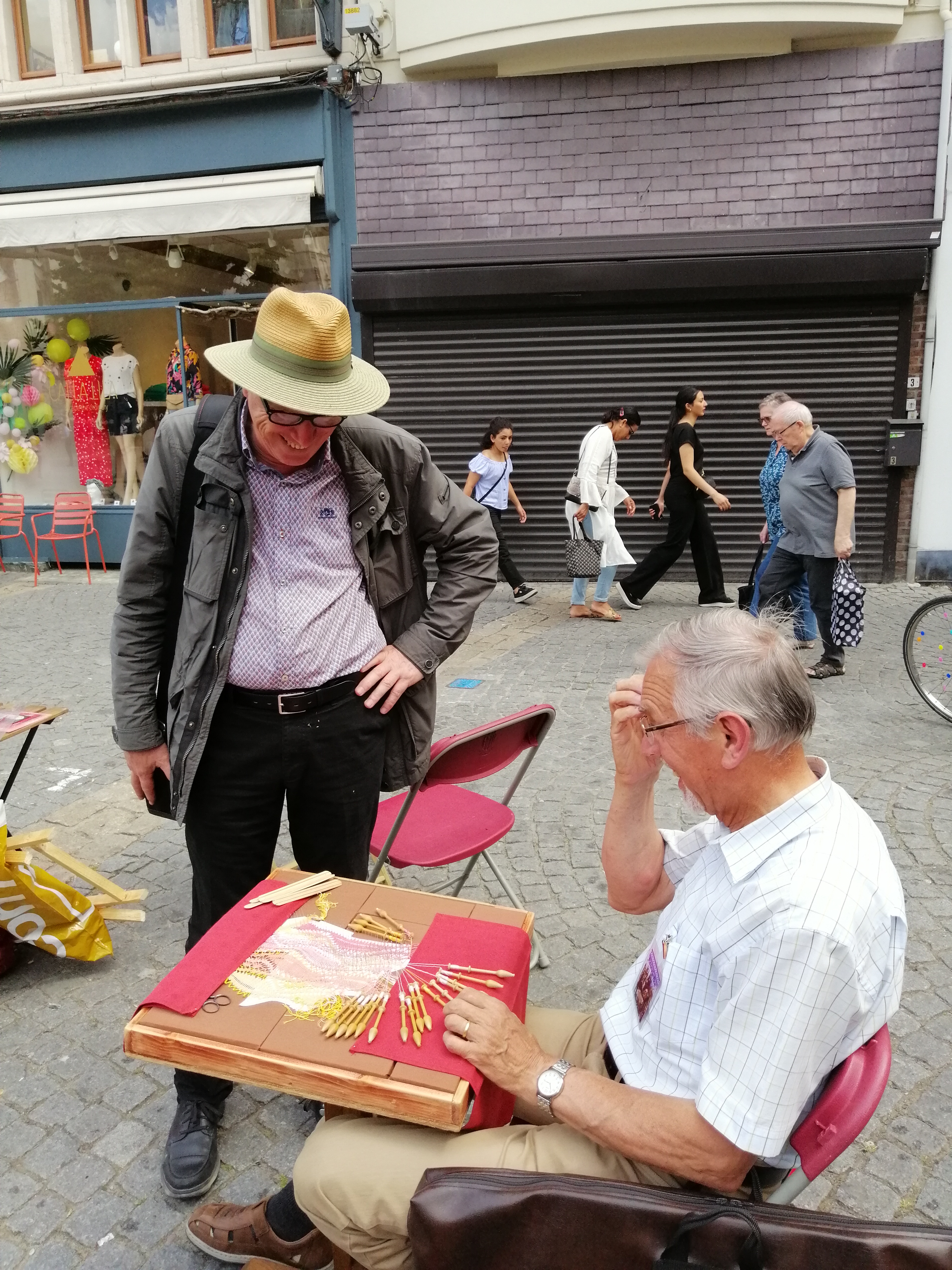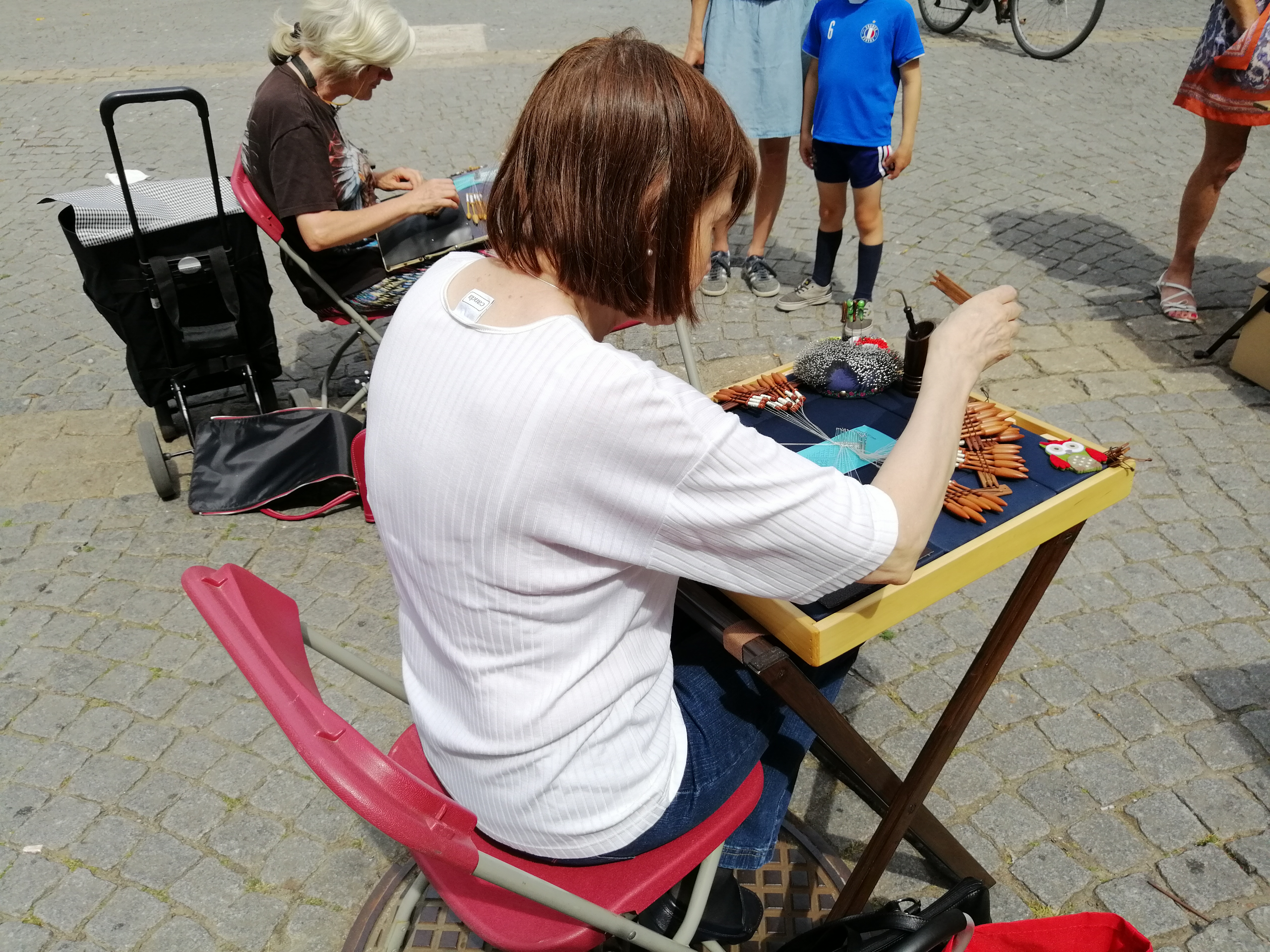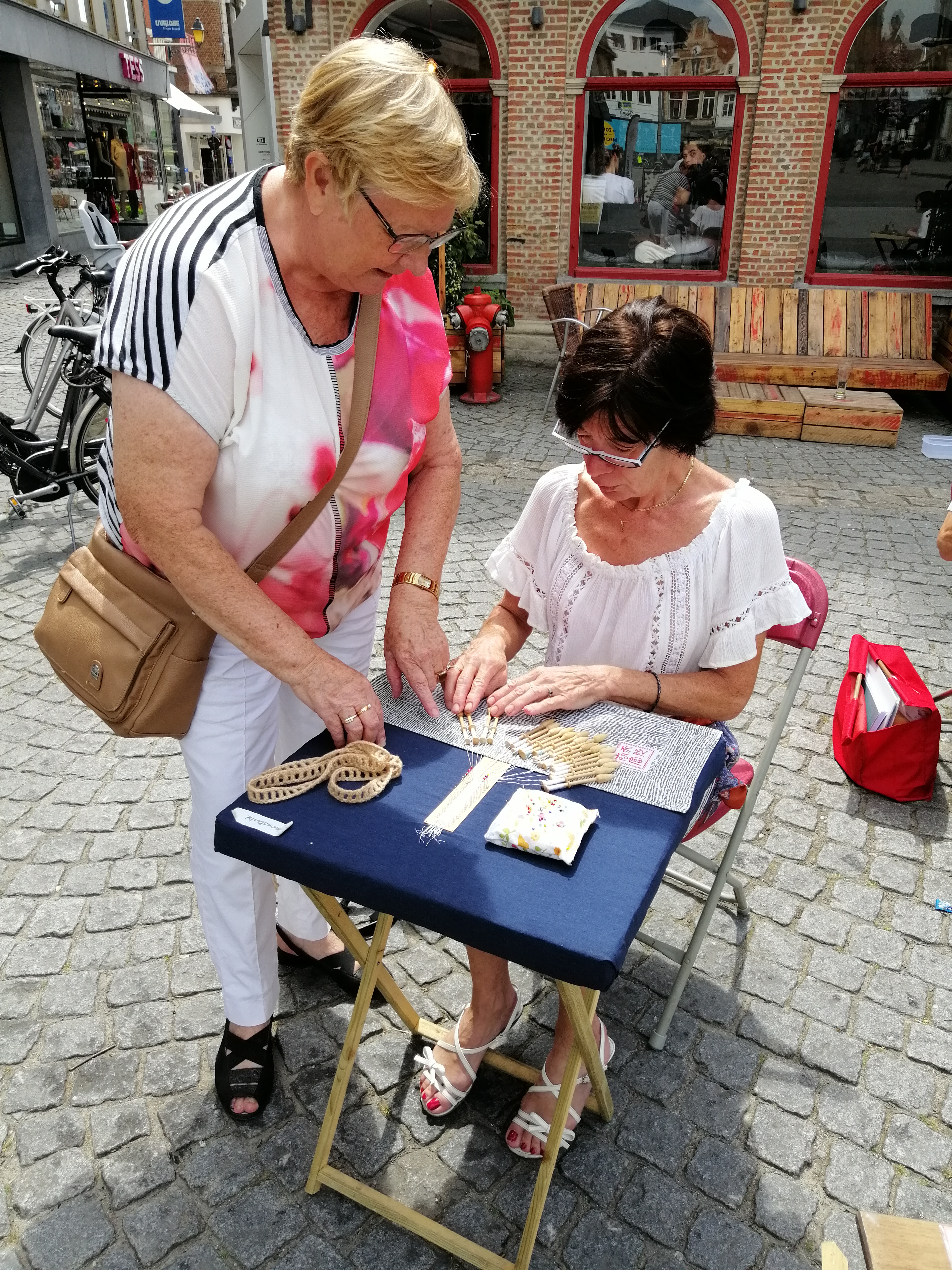 Als je volgende vrijdag in de buurt bent moet je zeker eens een kijkje gaan nemen en met deze mensen ook praten, je leert zoveel bij op een korte tijd en misschien kan je ook het kantklossen zelf eens uitproberen.