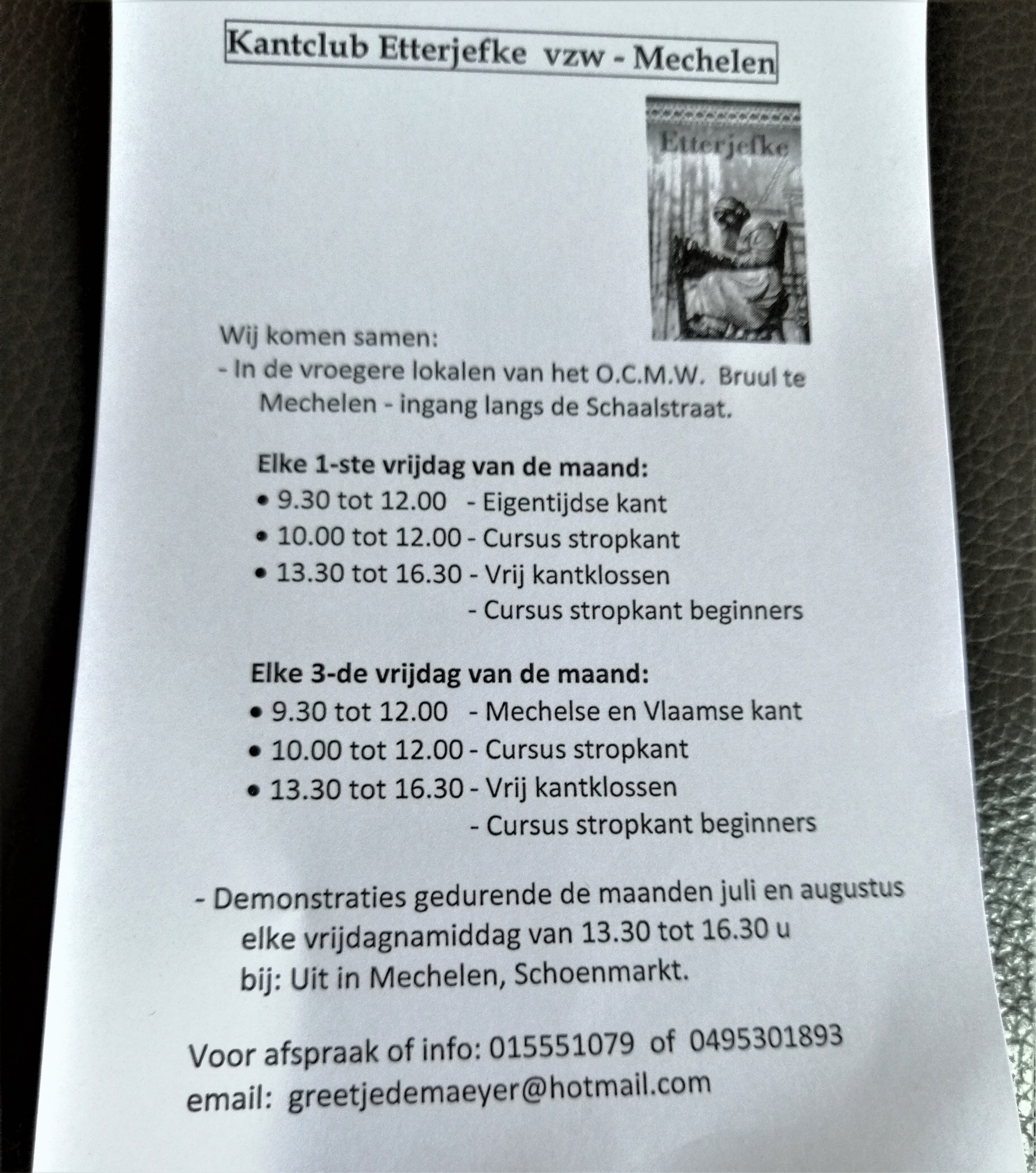 de Mechelse Kant (een kantsoort zonder spelden) nog leeft. Etterjefke wil