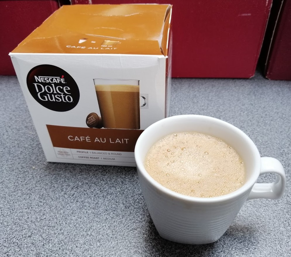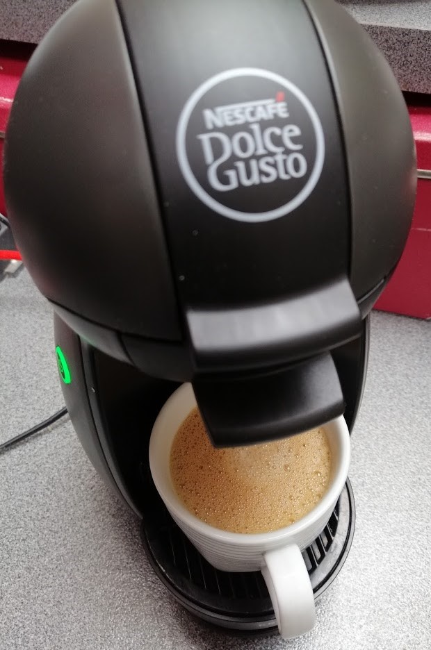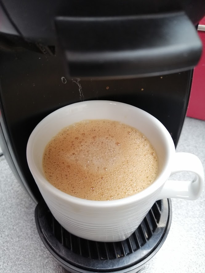 Doordat ik, zoals zoveel andere mensen, meer aan huis gekluisterd ben en mijn dagelijks cappuccino in de stad niet kan gaan drinken, zet ik mezelf regelmatig een tasje met deze Dolce Gusto.
