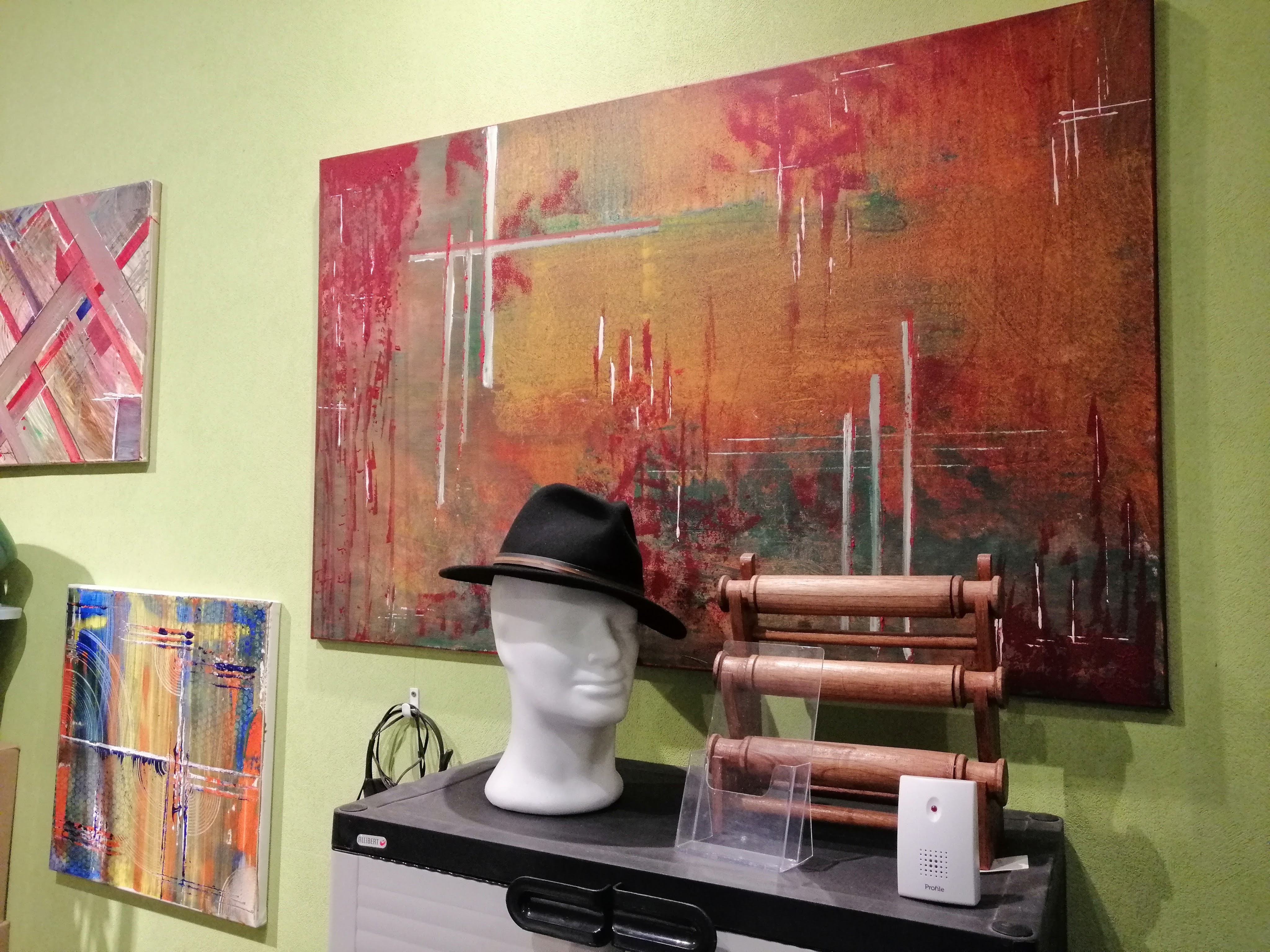Ondertussen heb ik ook al een hele collectie van handgemaakte schilderijen.