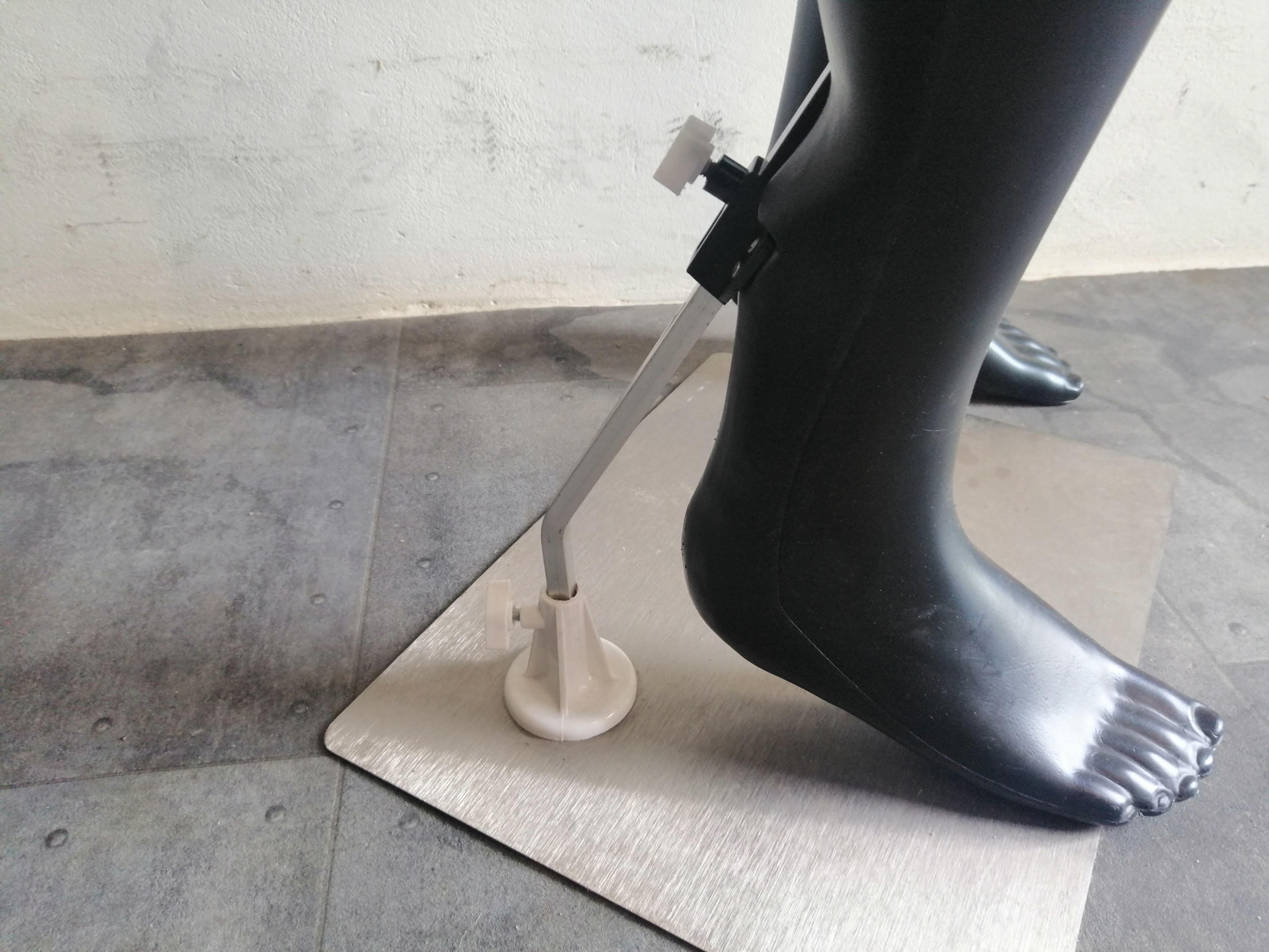 De meeste etalageppppen staan op een voetpin. Zie voorbeeld hieronder.