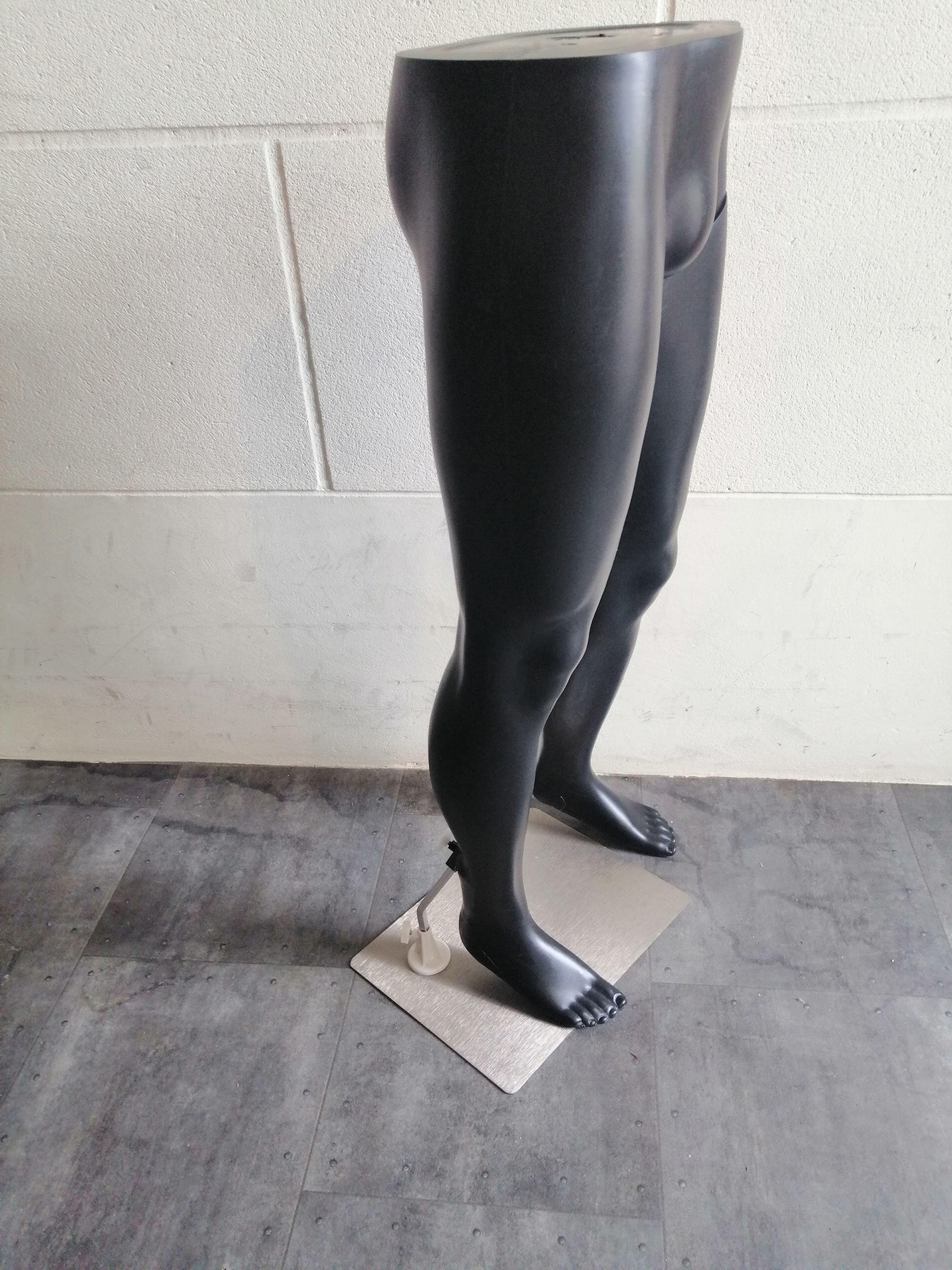 Een etalagepop, alvast een staand model, is doorgaans voorzien van een voetplaat en een pin om de etalagepop op deze plaat te bevestigen Er zijn uitzonderingen op deze regel, maar die gaan we vandaag niet bespreken om het niet nog ingewikkelder te maken.