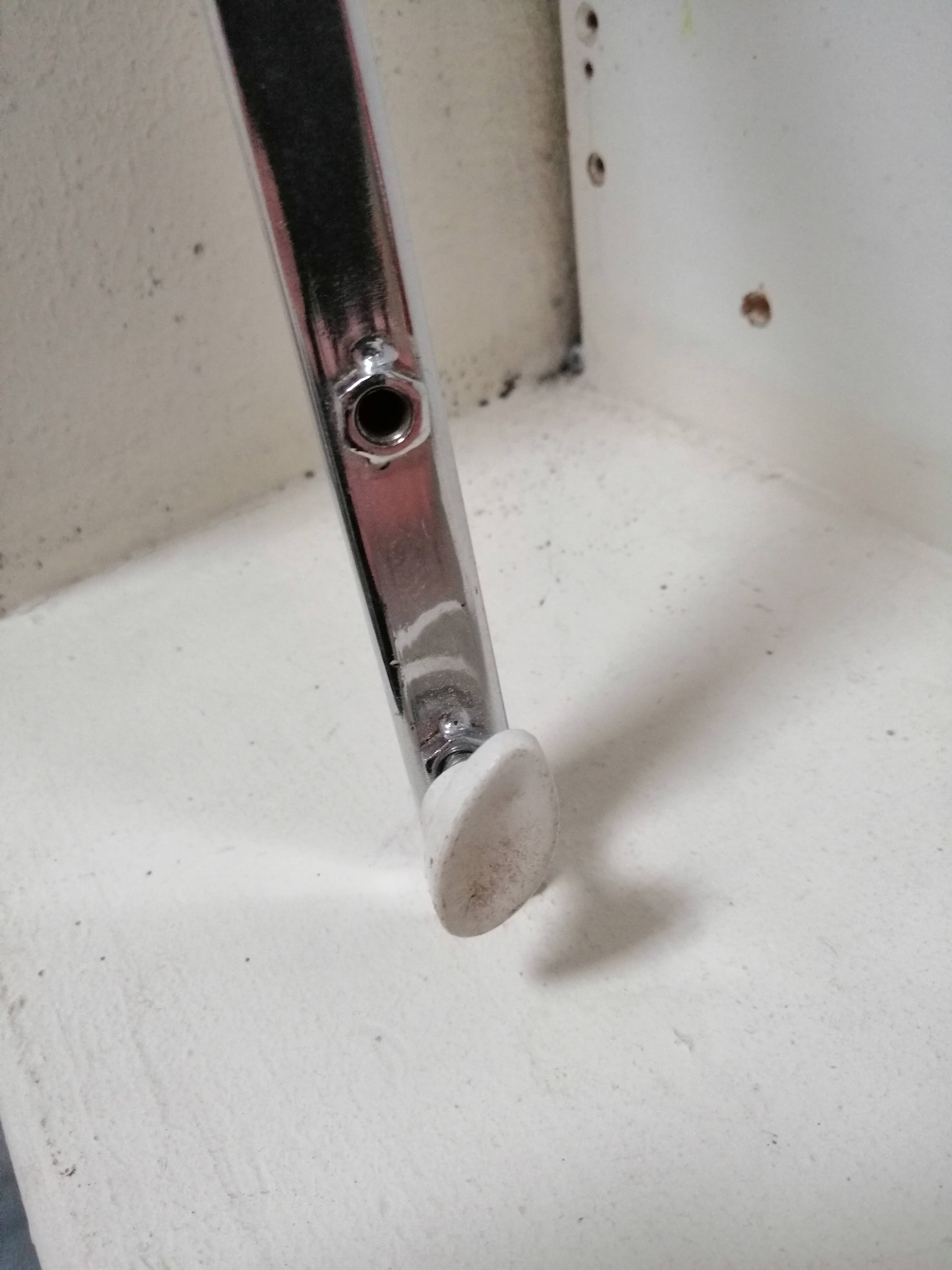 En dan hebben we de kuitpin, een bevestiging die op al de etalagepoppen die ik verhuur, terug te vinden is.